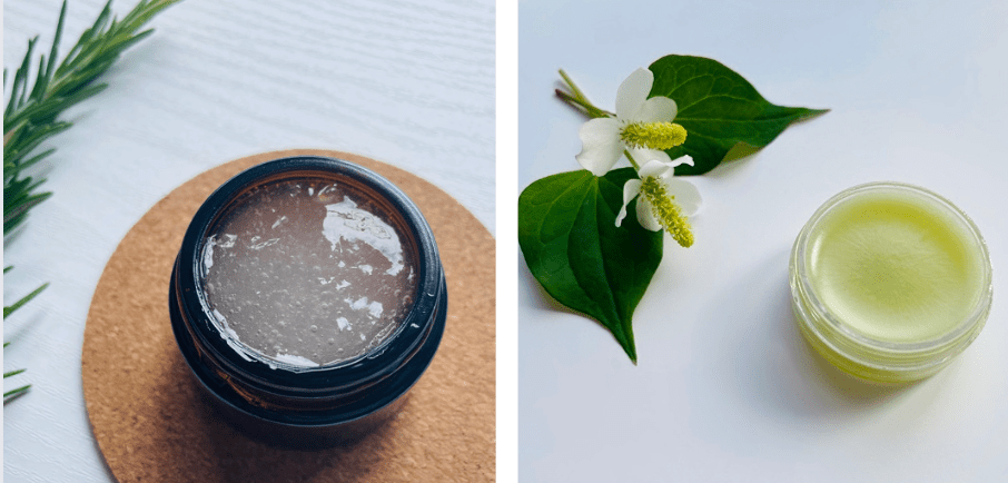 今回使用する香りは、アロマジェルにはローズマリー、ドクダミチンキは基本はドクダミのお花の自然の香りのみになりますが、ローズマリーの香り付をすることも可能です。